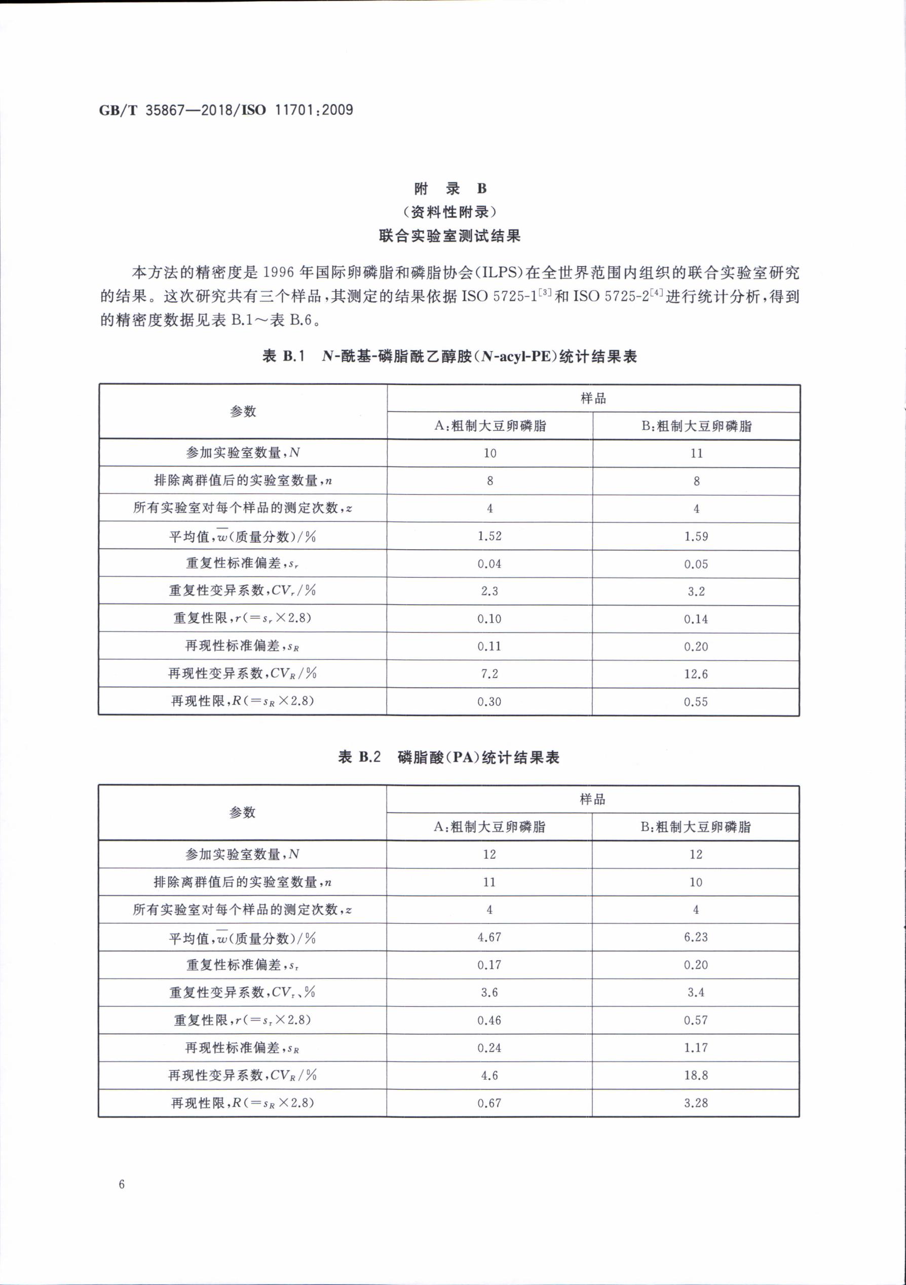 卵磷脂中磷脂含量的測定GB/T 35867-2018